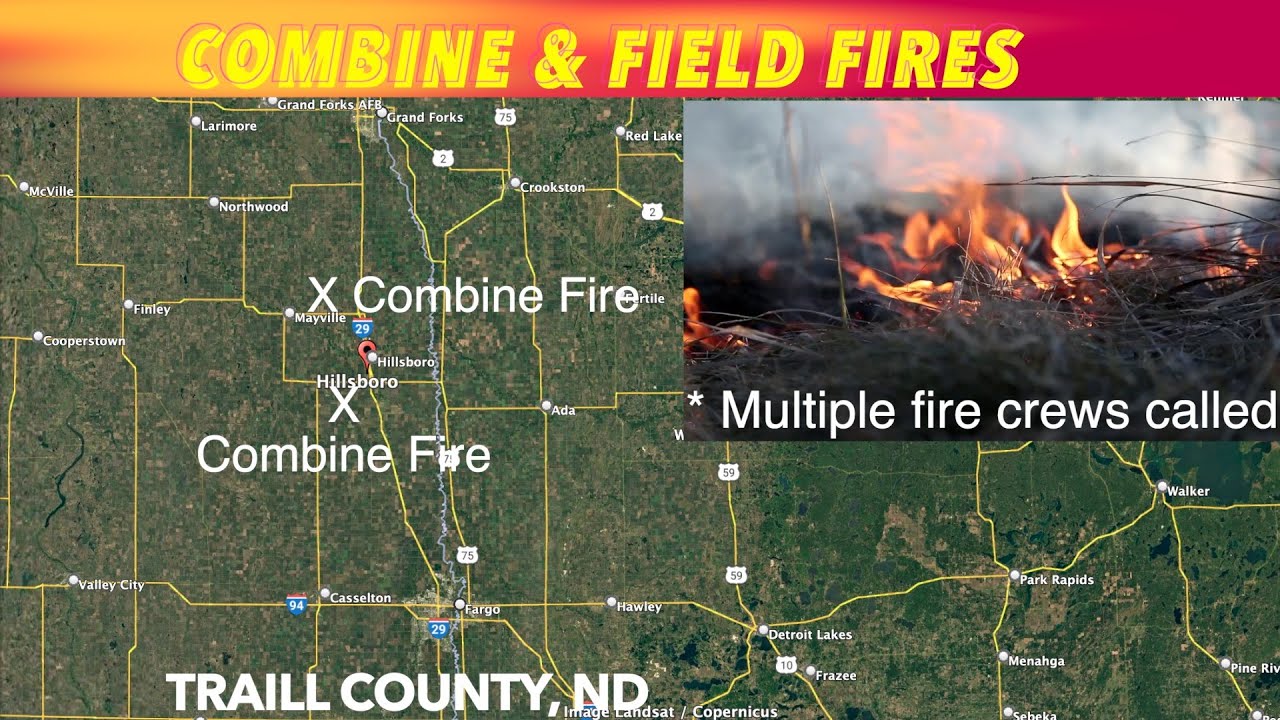 HILLSBORO, ND (trfnews.i234.me) Multiple fire crews called out for combine and field fires in Traill County, North Dakota Wednesday afternoon.