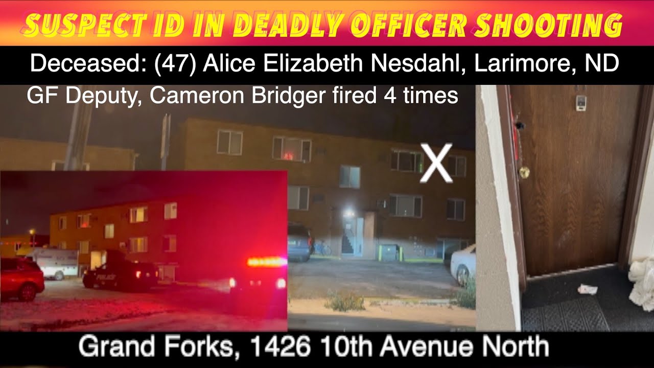 GRAND FORKS, ND (trfnews.i234.me) Grand Forks County Sheriff Any Schneider has identified the victim of a deadly shooting Friday night as: 47-year old Alice Elizabeth Nesdahl of Larimore, North Dakota. The Sheriff says Deputy Cameron Bridger fired 4 times as she threatened the male hostage with a knife.