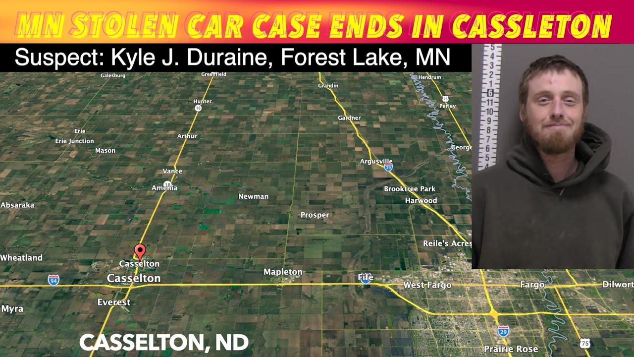 Minnesota Stolen Car Case Ends In Casselton, North Dakota CASSELTON, ND (trfnews.i234.me) A stolen car case out of Maple Grove, Minnesota ended with the arrest of Kyle Duraine in Casselton, North Dakota.