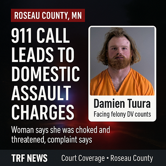 Mugshot of Damien Tuura, accused in Roseau County domestic assault caseDamien Tuura is charged in Roseau County District Court following a reported domestic assault.