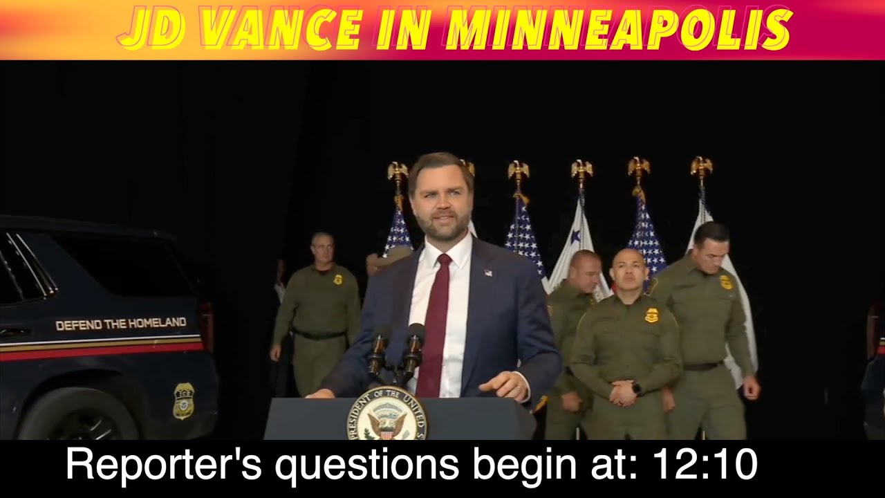 FULL NEWS CONFERENCE: JD Vance In Minneapolis, Reporters Questions Begin At: 12:10 MINNEAPOLIS, MN (trfnews.i234.me) Vice-President, JD Vance held a news conference in Minneapolis on this Thursday. We have the entire news conference. Reporters questions begin at: 12:10 .