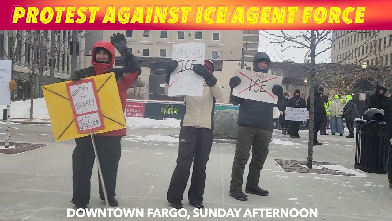 FARGO, ND (trfnews.i234.me) A group of ICE agent protesters braved the cold in downtown Fargo, North Dakota on this Sunday afternoon to make their voices heard.