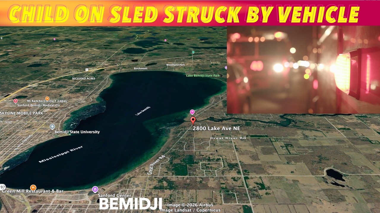 BEMIDJI, MN (trfnews.i234.me) Emergency responders called for a report of a child on a sled struck by a vehicle on the east side of Lake Bemidji on this Saturday afternoon.