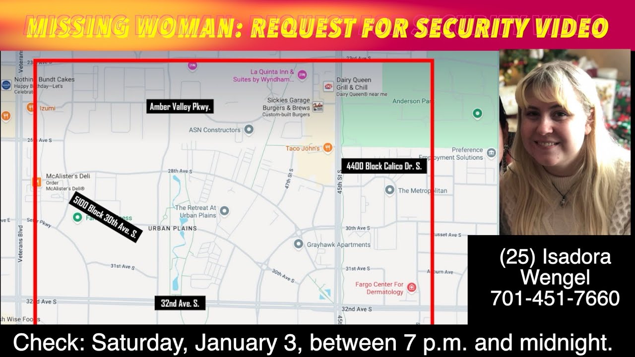 West Fargo (trfnews.i234.me) — Police want help finding 25-year-old Isadora Wengel. She has been missing for about two weeks. Police now believe the case may involve foul play. They shared that update at a recent news conference. Where she was last seen Investigators said Wengel was last seen on December 31, 2025. She was near… Continue reading West Fargo: Search Widens for Missing Woman